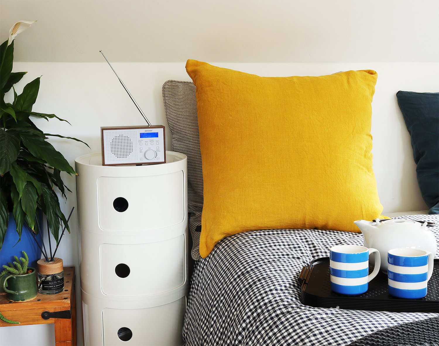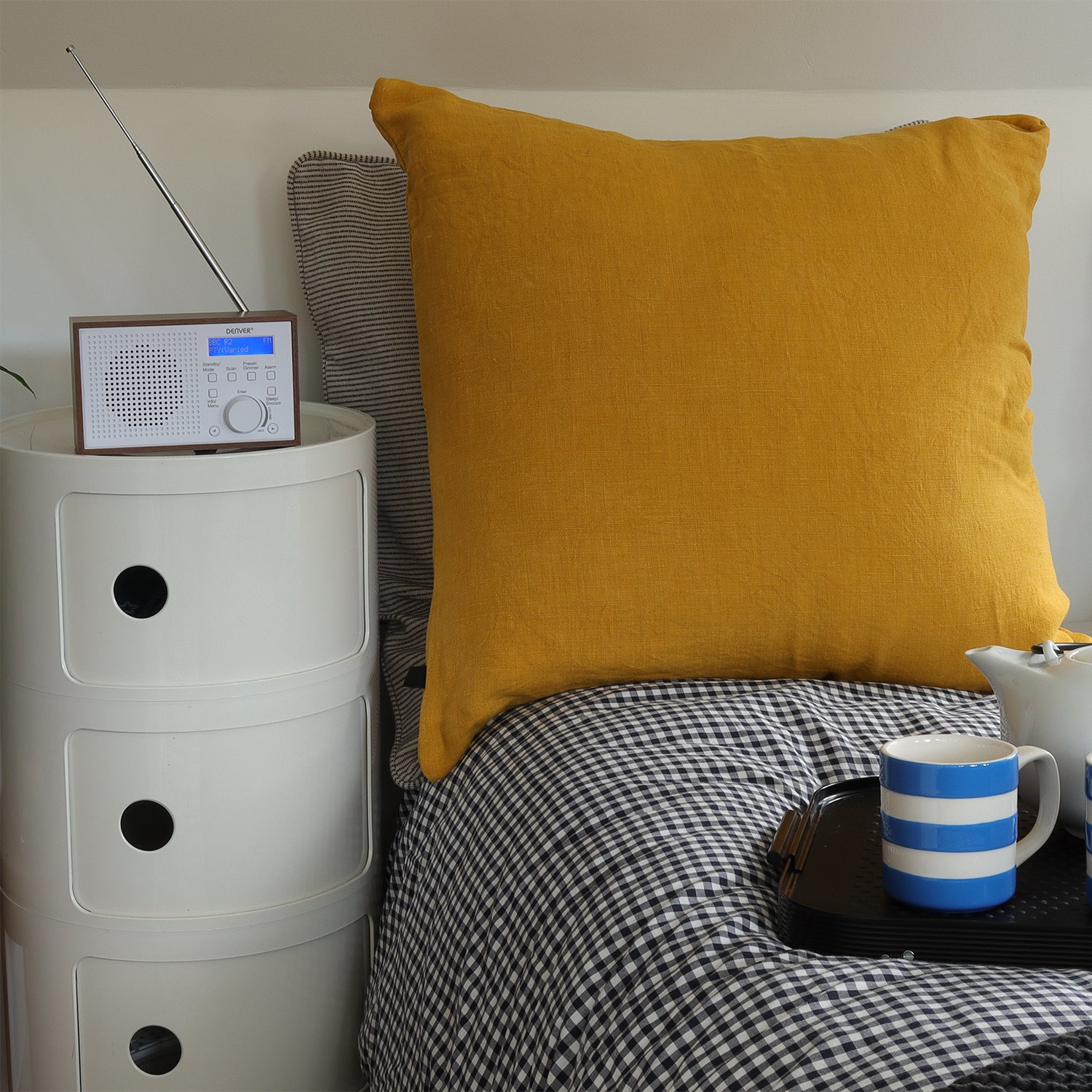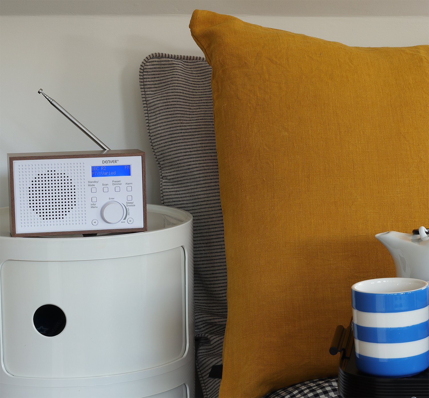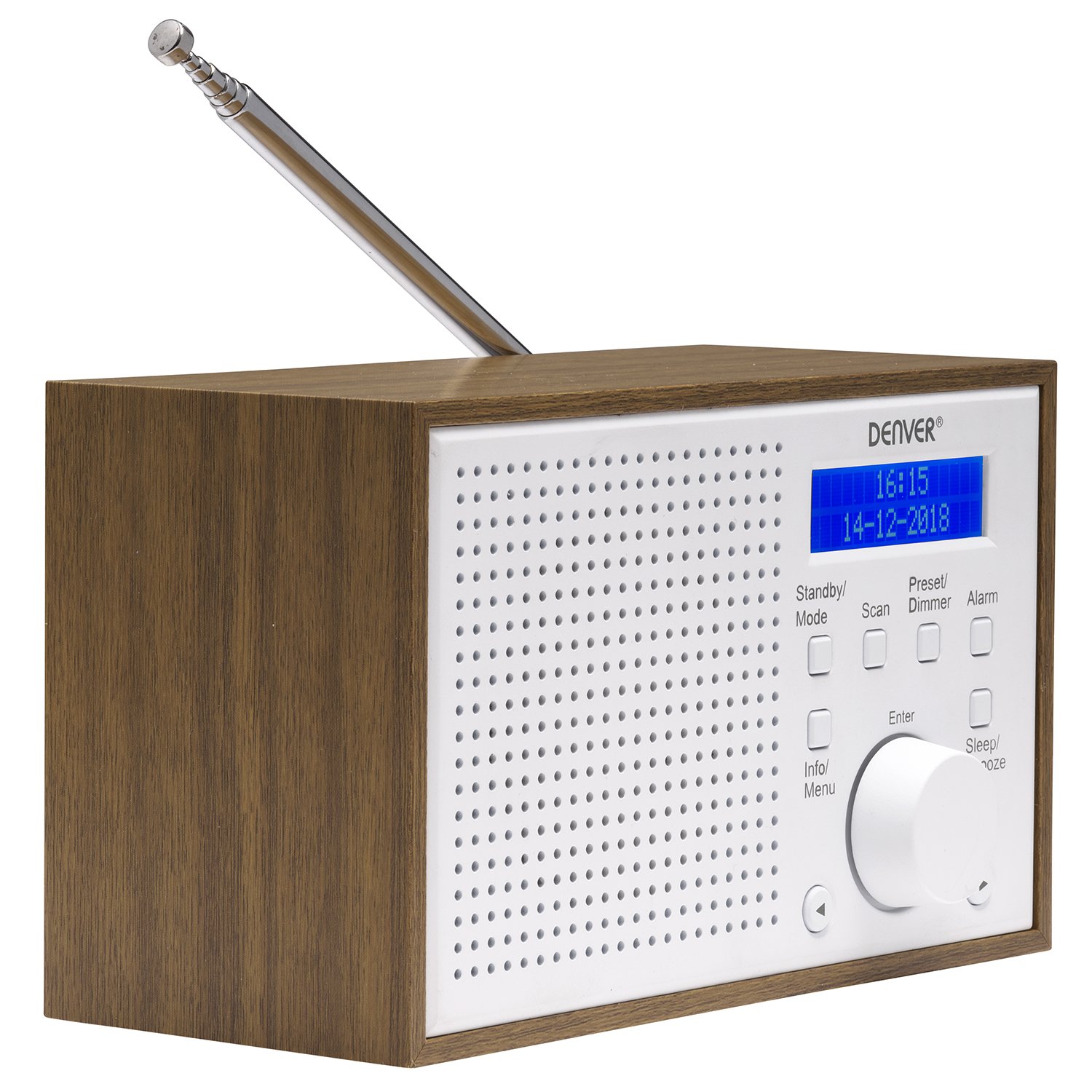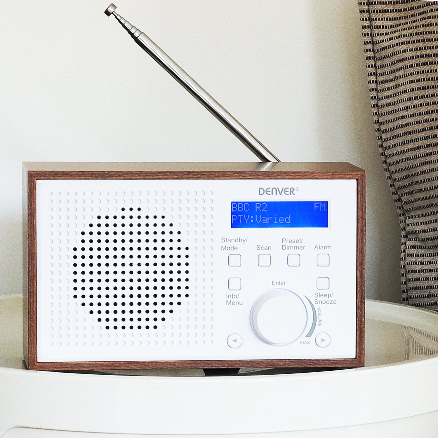 Denver have chosen a clean, Danish look for the DAB-46 with its smart wooden look and white cabinet making it perfect for every room in your house be it bedside, kitchen windowsill or the garden